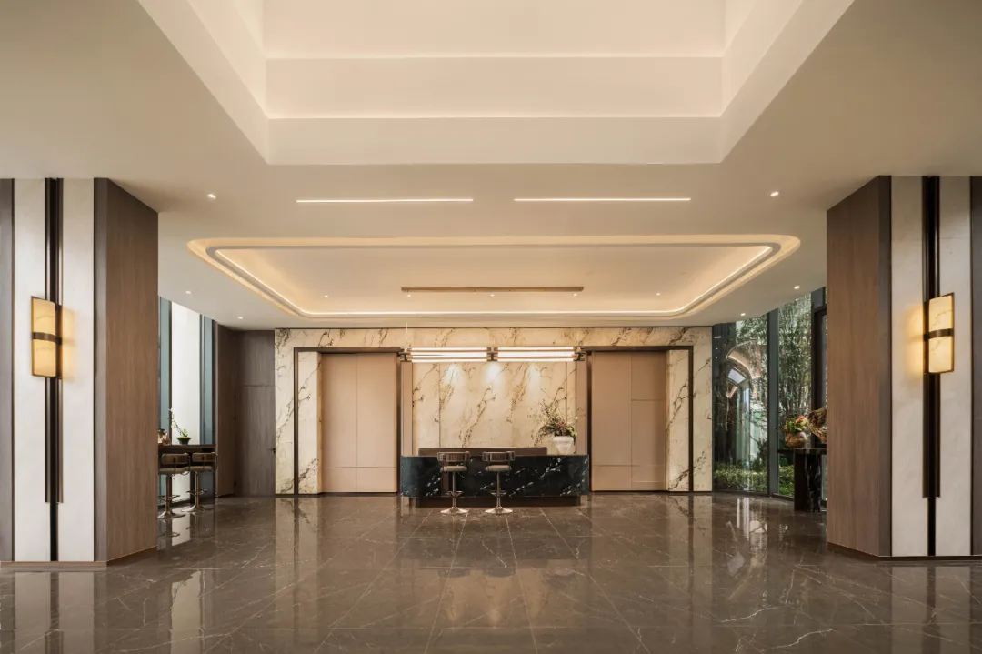 抬頭仰望,“高級銀灰”建筑外立面躍入眼簾。我們融合蘇杭文化與當代美學,運?“superflat超扁平”理念,化繁為簡,塑造建筑立體挺拔的美感,無界共融風光無限的詩意。
