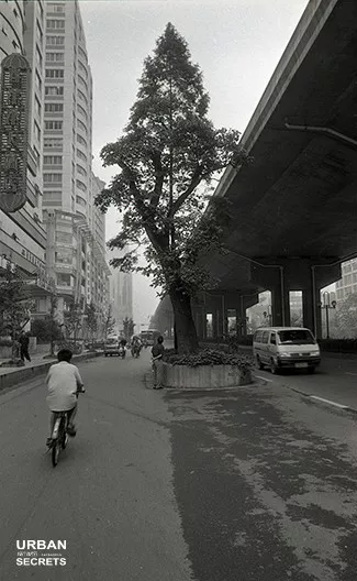▲原先中河西畔深巷內(nèi)(下興忠巷)的一棵古樹(shù),后來(lái)立在了路邊。