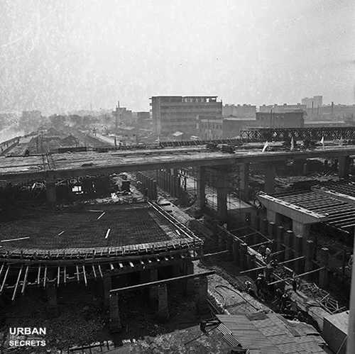 ▲80年代在建的中河立交橋(環(huán)城北路、中河路)
