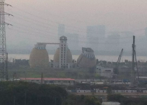▲2015年網(wǎng)友拍到正在拆除中的四堡污水處理廠,三個(gè)巨大的“碉堡”正在倒下。四堡污水處理廠于1988年建成,2012年5月10日整體停運(yùn),搬遷至下沙。