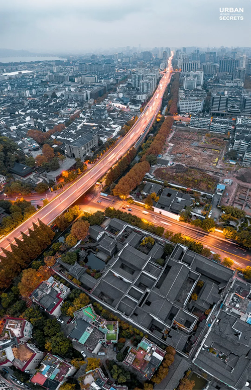 ▲俯瞰胡雪巖故居與中河。圖自城秘特邀攝影師@肖奕叁。