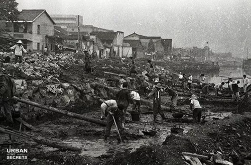 ? ? 由于垃圾堆積,有些河段的河床竟被抬高了兩尺之多。這放到現(xiàn)在,周邊人肯定避之唯恐不及,但當(dāng)時(shí)的沿河居民,不知是久入鮑魚(yú)之肆而不聞其臭,還是被逼仄的住房條件給逼瘋了,竟然創(chuàng)造性地對(duì)垃圾堆加以利用。?