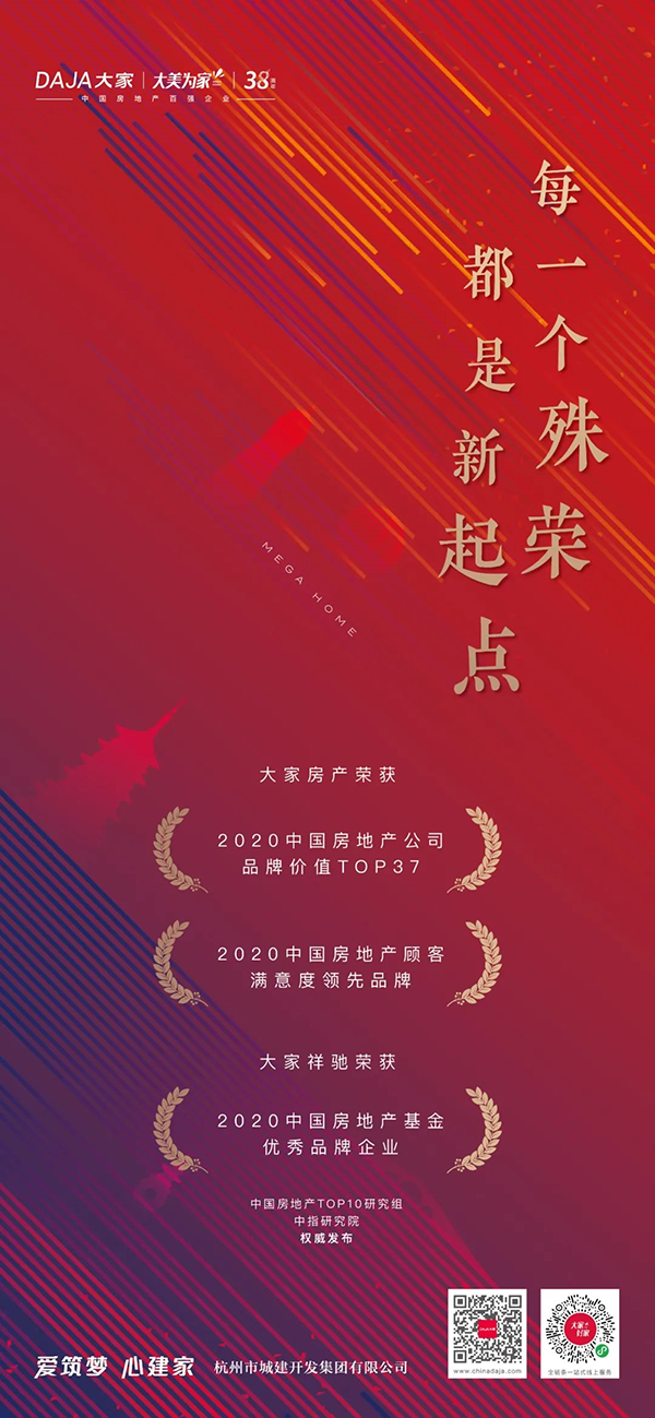 時代催人奮進,發展時不我待。38載來,大家房產憑借出色的品質與精準的定位,在許多城市留下標桿印記。2020年以來,大家房產以奔跑的姿態揚鞭快進,加速企業的規模化發展,碩果不斷,品牌價值得到快速提升。未來,大家房產不忘初心,緊抓行業發展趨勢,在“大美為家”的品牌征程上闊步前行,邁上企業發展新臺階。