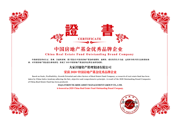 同時,集團下屬全資子集團大家祥馳資產管理集團憑借持續增長的基金規模、專業專注的投資領域,首次上榜,榮獲“2020中國房地產基金優秀品牌企業”。