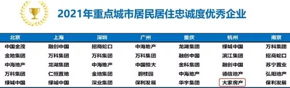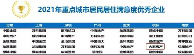 憑借穩(wěn)健實(shí)干的發(fā)展實(shí)力及創(chuàng)新卓越的品牌表現(xiàn),大家房產(chǎn)榮膺“2021中國(guó)房地產(chǎn)公司品牌價(jià)值TOP50 ” 和 “2021中國(guó)房地產(chǎn)顧客滿(mǎn)意度領(lǐng)先品牌”。