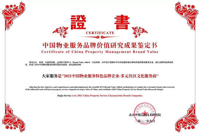 物業(yè)板塊“大家服務(wù)”,憑借優(yōu)異的市場(chǎng)表現(xiàn)和多元化的社區(qū)文化服務(wù),榮膺“2021中國(guó)物業(yè)服務(wù)特色品牌企業(yè)——多元社區(qū)文化服務(wù)商”。