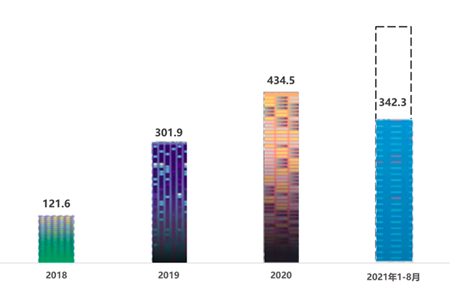 從2018年到2020年,大家房產(chǎn)銷(xiāo)售業(yè)績(jī)從121.6億增長(zhǎng)到434.5億,以?xún)赡陿I(yè)績(jī)?cè)鲩L(zhǎng)超3倍的速度成就行業(yè)發(fā)展的“超速度”,實(shí)現(xiàn)跨越式發(fā)展。而2021年1-8月,大家房產(chǎn)銷(xiāo)售額已超342.3億,同比增長(zhǎng)42%,銷(xiāo)售規(guī)模再上新臺(tái)階。