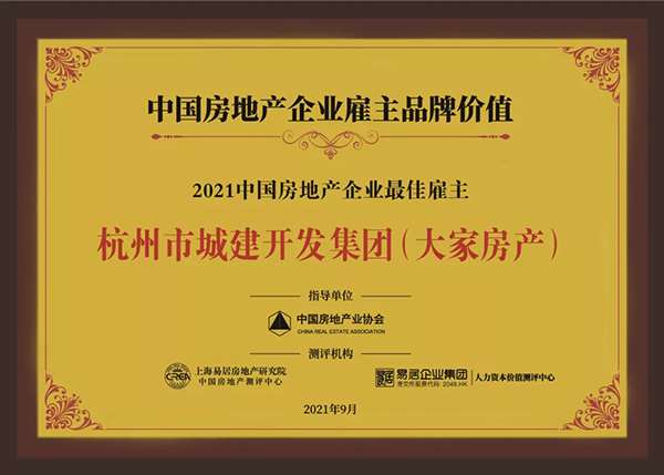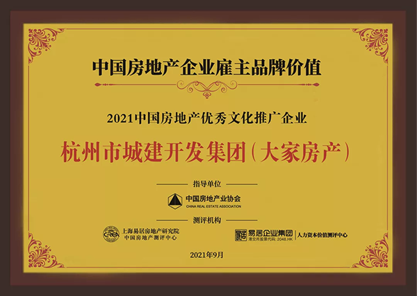 大家房產榮膺“2021中國房地產開發企業品牌價值華東10強”、“2021中國房地產企業人力資本價值100強”、“2021中國房地產企業最佳雇主”、“2021中國房地產優秀文化推廣企業”4項殊榮。