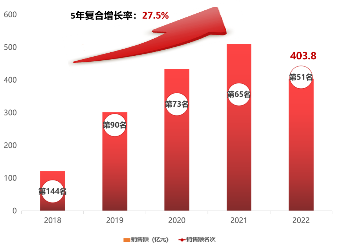 ???? 2022年,房地產市場行情持續下行,業內企業頻頻出險,行業也由規模化發展轉為有質發展,企業主動控制銷售規模,以實現平穩發展。根據中指研究院監測顯示,2022年共計130家房企躋身百億軍團,較去年減少28家,銷售額同比下降41.3%,不同類型房企銷售均出現不同程度承壓,但是國央企更受消費者的信賴,展現出較強的銷售實力。大家房產作為杭州實力國企,2022實現銷售金額403.8億元,在中指研究院權威發布的2022年中國房地產銷售業績排行榜中位居第51位,名次逐年提升,銷售業績五年復合增長率達到27.5%。