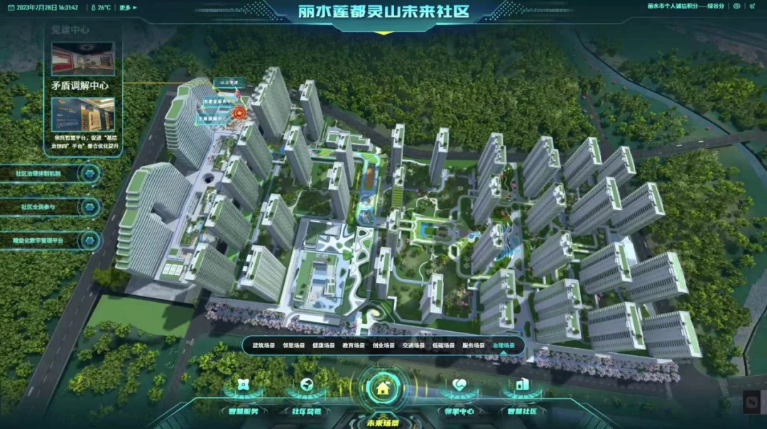 ▲麗水大家·未來社區(qū)大腦顯示屏