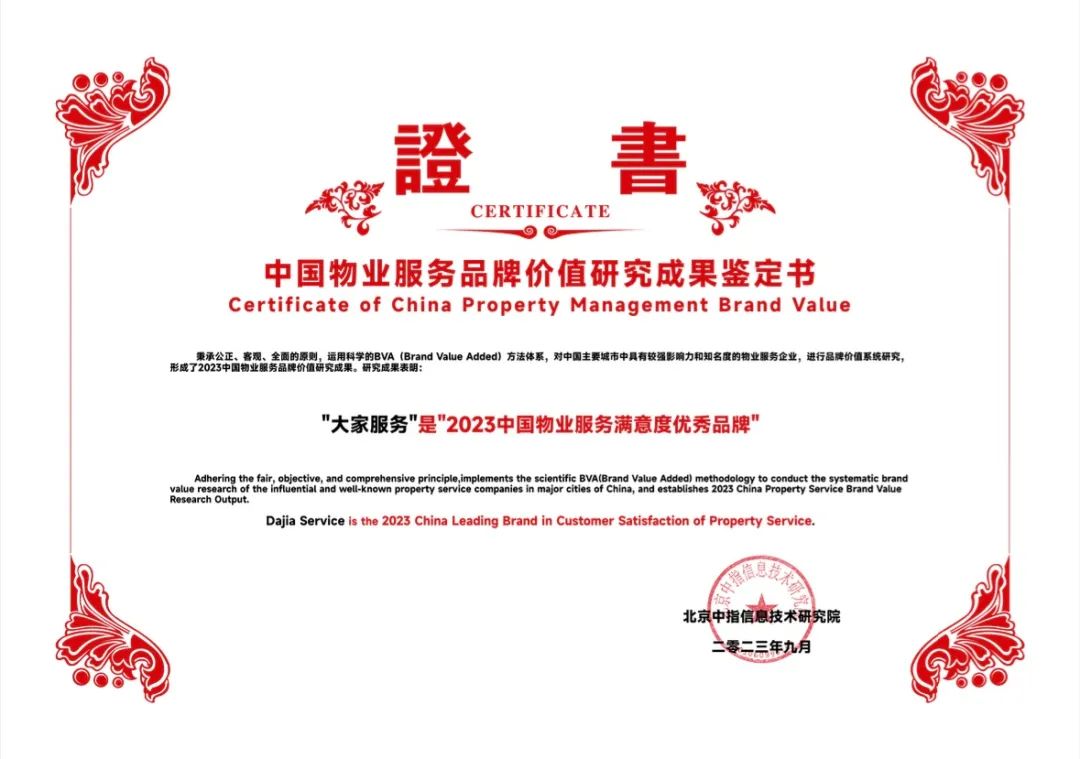 同時,集團旗下物業(yè)板塊“大家服務(wù)”,憑借高品質(zhì)的物業(yè)服務(wù)和超預(yù)期的業(yè)主滿意度,榮膺“2023中國物業(yè)服務(wù)滿意度優(yōu)秀品牌”。