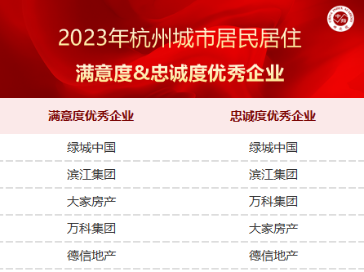 在中指調(diào)查?“2023年杭州城市居民居住滿意度&忠誠度優(yōu)秀企業(yè)”排名中,大家房產(chǎn)分別位列第3名與第4名,以高標(biāo)準(zhǔn)的“美好社區(qū)”服務(wù),贏得了家人和行業(yè)的認(rèn)可和尊重,成就了大家品牌。