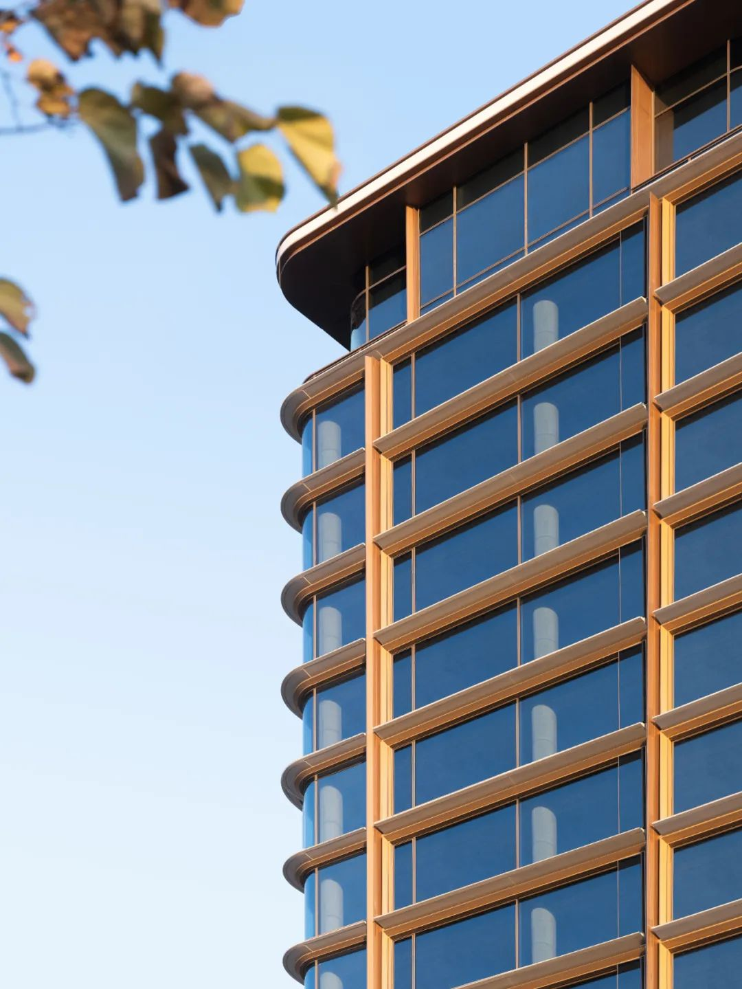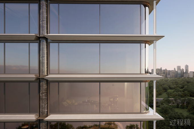 杭州大家·明廬則進一步探索藝術深度,如雕琢工藝品般細膩打磨,在油畫框立面基調之上,用仿石鋁板疊出整整9層折褶,將斯卡帕疊級+油畫框美學相互融合,形成新的美學標識。同時,每一層曲面玻璃的轉角,還點綴著纖細的仿石鋁板羅馬柱,讓古典美學在當代復興。