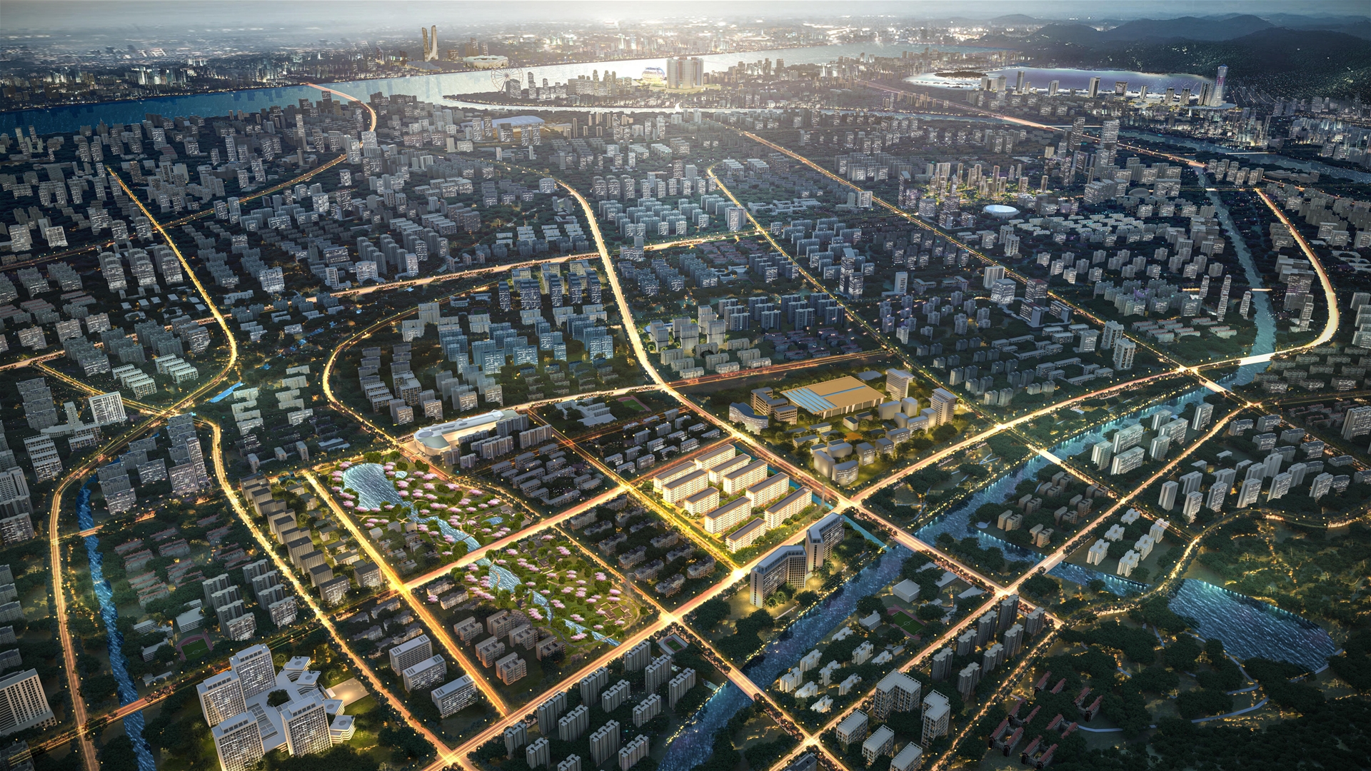 杭州市上城區同協路與建塘路交叉口,項目位于丁蘭新城CLD 中央生活區的桃花湖公園畔,鏡像西湖“湖濱格局”,回歸一面悠然自得,一面人間煙火的優雅洋房生活。