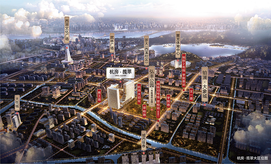 ? ? ? ? 攬翠大廈位于杭州市文教商圈核心,緊鄰學院路、教工路、文一路等交通要道,地處杭師大舊址,領踞黃龍軸心,坐擁繁華的武林、黃龍雙商圈,城西銀泰、大悅城、遠洋樂堤港等綜合體環伺。距地鐵10號線(規劃)翠柏路站約150米,距地鐵2號線學院路站約800米。