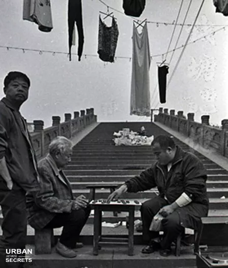 ▲東河廣安新橋西堍“橋頭博弈”的老人們。章勝賢老師拍攝。