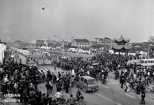 ▲1986年,中河路貫通通車(chē)典禮現(xiàn)場(chǎng)。章勝賢攝影。