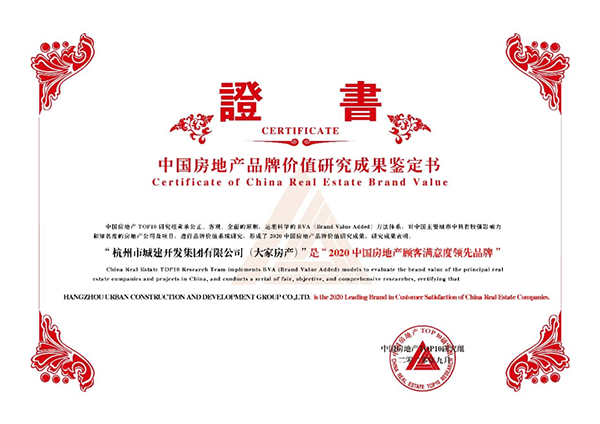 憑借雄厚的發展實力及卓越的品牌表現,大家房產榮膺“2020中國房地產公司品牌價值TOP50”,位列第37位,并獲得“2020中國房地產顧客滿意度領先品牌”稱號。