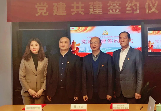 時值建黨百年華誕,為進一步實現基層黨建工作優勢互補、互相促進、協調發展,持續推動黨建與業務同向發力,不斷增強黨組織的創造力、凝聚力、戰斗力,4月15日,杭州市城建開發集團大家祥馳黨支部與香溢融通集團杭州事業部黨支部舉行黨建共建簽約儀式。