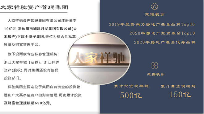2021年,大家祥馳資產(chǎn)管理集團(tuán)有限公司(大家祥馳)成立八周年。回首過去的歷程,我們一路載譽(yù)前行,屢獲“2019年度影響力房地產(chǎn)基金品牌Top30”,“2020年房地產(chǎn)投資基金Top10”,“2020年房地產(chǎn)基金優(yōu)秀品牌”等獎項(xiàng)。
