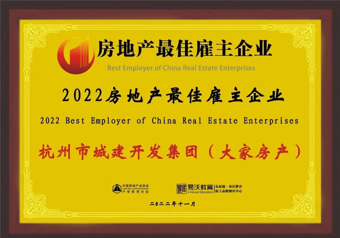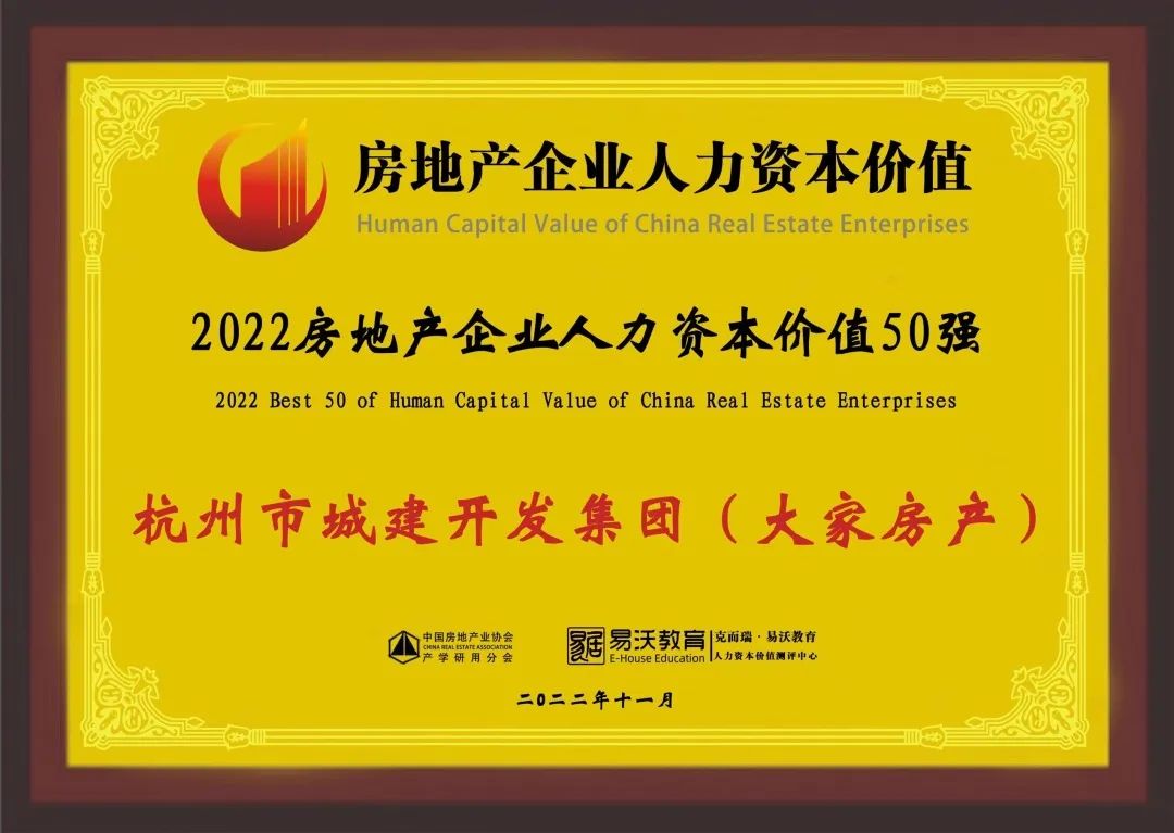 ??? 杭州城建(大家房產)榮膺“2022房地產企業(yè)人力資本價值50強 ”(第40位)、“2022房地產最佳雇主企業(yè)”、“2022房地產優(yōu)秀案例實踐企業(yè)”三項殊榮。
