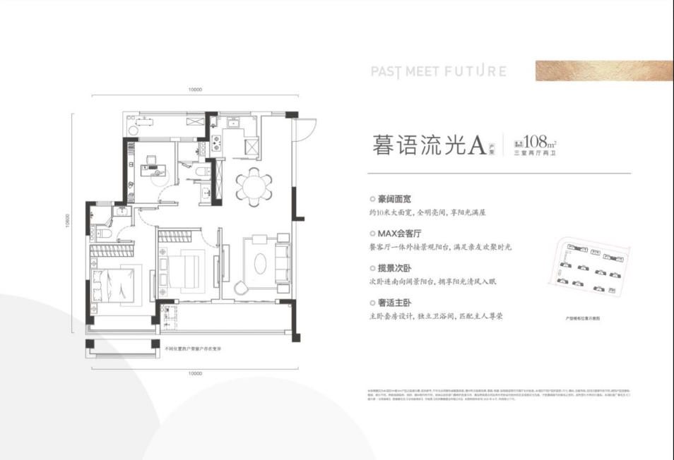 3、建筑面積約98-108㎡當代美學住區(qū),大面積落地窗、一體化餐客廳、功能空間賞景面。